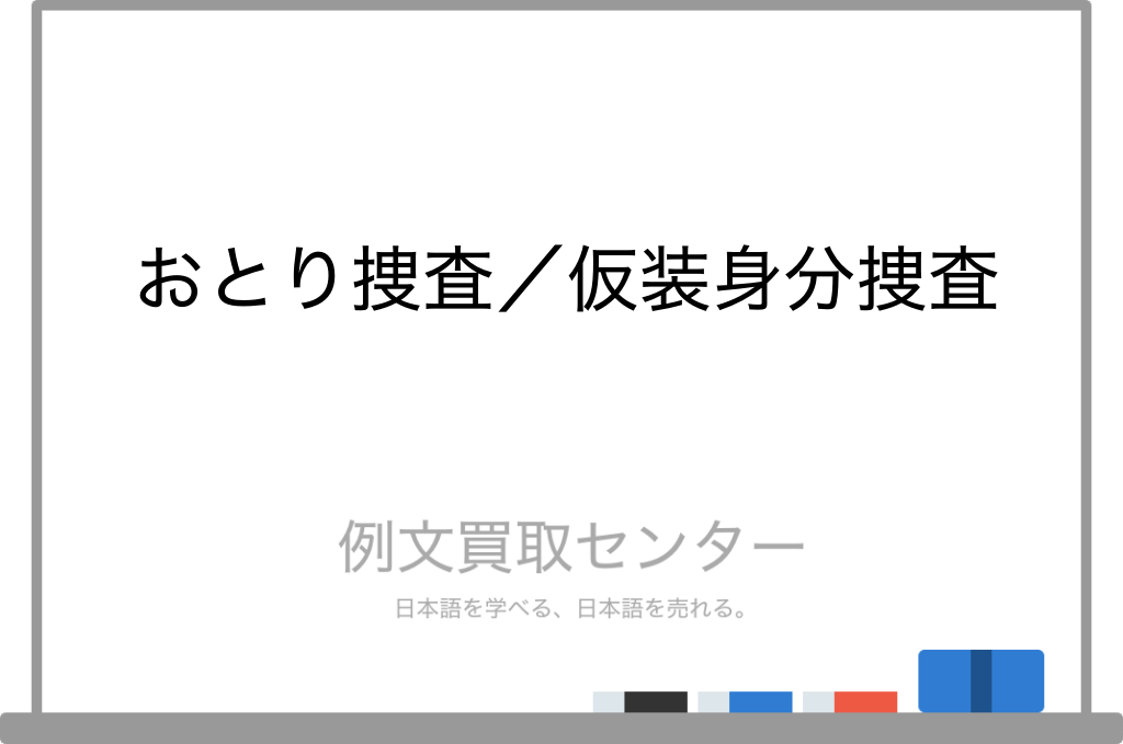 似た意味を持つ「おとり捜査」(読み方:おとりそうさ)と「仮装身分捜査」(読み方:かそうみぶんそうさ)の違いを例文を使って分かりやすく解説しているページです。