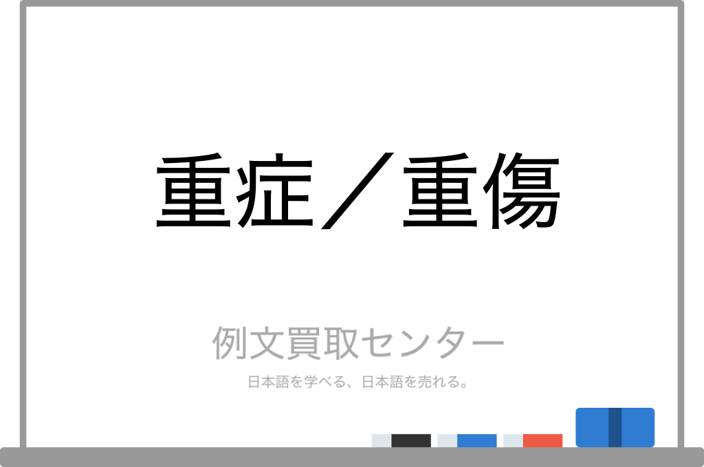 重症と重傷の違いを分かりやすく言うと、重症とは重い病気や重い怪我を表し、重傷とは重い怪我のみを表すという違いです。