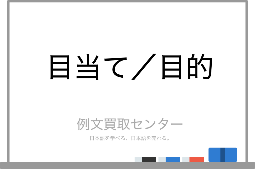似た意味を持つ「目当て」(読み方:めあて)と「目的」(読み方:もくてき)の違いを例文を使って分かりやすく解説しているページです。