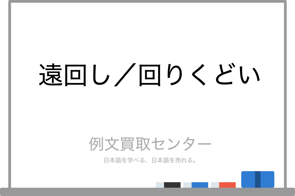 似た意味を持つ「遠回し」(読み方:とおまわし)と「回りくどい」(読み方:まわりくどい)の違いを例文を使って分かりやすく解説しているページです。