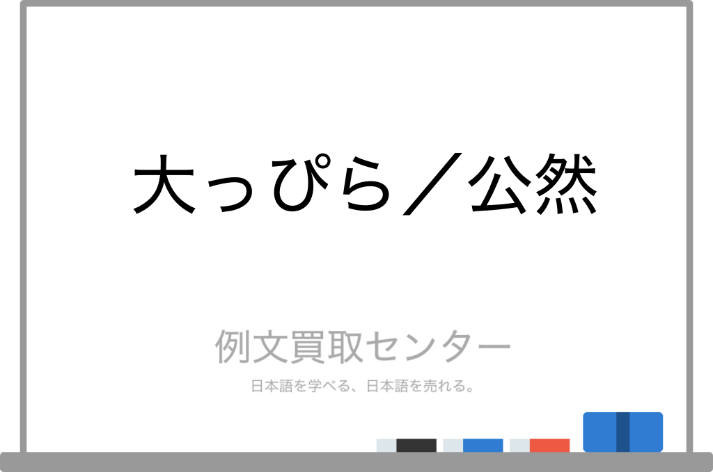 似た意味を持つ「大っぴら」(読み方:おおっぴら)と「公然」(読み方:こうぜん)の違いを例文を使って分かりやすく解説しているページです。