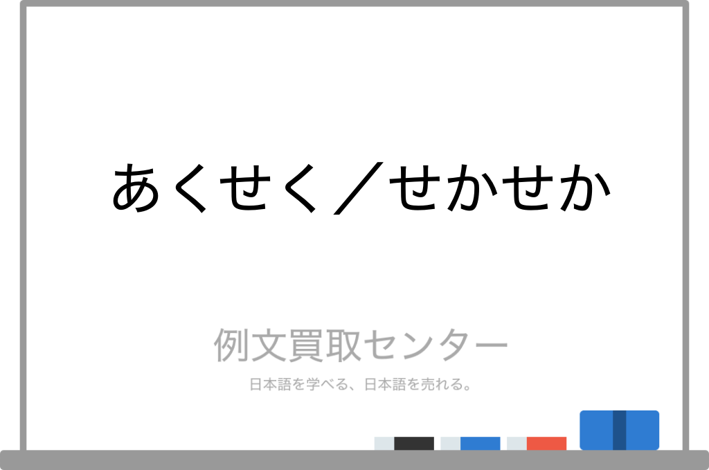つまり、欲望や目的にとらわれて落ち着かない様子を表すのが「あくあく」、時間に追われて忙しなく動く様子を表すのが「せかせか」と覚えておきましょう。